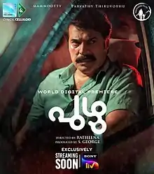 Puzhu (transl. Worm) is a 2022 Indian Malayalam-language psychological drama film directed by debutant Ratheena and jointly written by Harshad and Suhas-Sharfu.[1] The film stars Mammootty and Parvathy Thiruvothu in the lead roles. Cinematography of the film is handled by Theni Eswar and the film score and songs are composed by Jakes Bejoy.