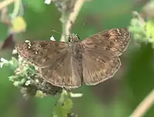 The Pyrgini are a tribe in the skipper butterfly subfamily Pyrginae. Formerly, when only four tribes of Pyrginae were recognized, the Pyrgini contained the largest number of genera among these. But this overly wide delimitation has since turned out to be paraphyletic.[1]