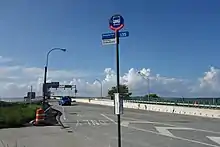 On March 14, 2016, one of the lanes of the southbound off-ramp from the Marine Parkway Bridge was closed due to construction. Because of this, the Q35 bus stop at the foot of the bridge was closed and relocated farther east to the stop at the Jacob Riis Park central mall.[74] For the 2016 summer season, the MTA added 35 daily trips to the Q35 route on Saturdays and Sundays, decreasing the trip headways from 10 minutes to seven-and-a-half minutes.[75][76]