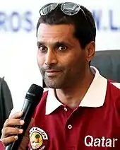 At the age of 41, rally driver Nasser Al-Attiyah was competing in his fifth consecutive Olympic Games.[43] He automatically qualified for a quota spot into the men's skeet because he won the gold medal in the discipline at the 2012 Asian Shooting Championships.[44][45] Al-Attiyah entered seven contests and visited several training camps to prepare himself for the Olympics.[46] The qualification round of the men's skeet took place on 31 July. He came fourth out of thirty-six shooters with a score of 121 points. This score earned Al-Attiyah automatic qualification for the final that was held on the next day.[47] He held the bronze medal position until he missed two of his targets and entered a shoot-out against Russia's Valeriy Shomin. Al-Attiyah won the shoot-out and the bronze medal after Shomin missed his sixth target.[48] It was Qatar's third ever Olympic medal and its first since Said Saif Asaad's bronze in men's weightlifting at the 2000 Sydney Games.[10]