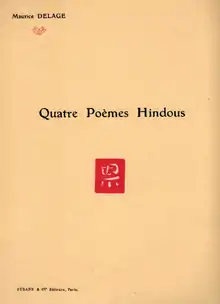 The Quatre poèmes hindous ("Four Hindu poems") are a cycle of mélodies by the French composer Maurice Delage for soprano and chamber ensemble of two flutes, oboe, two clarinets, harp, and string quartet. Delage composed it in 1912 while he was visiting India. It is considered his first masterwork, and it remains the best known and most recorded of his works.