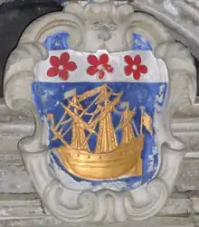 - ↑ As seen on his heraldic achievement in the Church of St James the Great, Kilkhampton, Cornwall