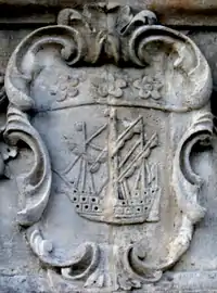 - ↑ Image of enamel escutcheons on the Guildhall staircase