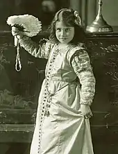 Albert had a stammer, which affected his ability to deliver speeches, and after October 1925, Elizabeth assisted in helping him through the therapy devised by Lionel Logue, an episode portrayed in the 2010 film The King's Speech. In 1926, the couple had their first child, Princess Elizabeth—"Lilibet" to the family—who would later become Queen Elizabeth II. Albert and Elizabeth, without their child, travelled to Australia to open Parliament House in Canberra in 1927.[34] She was, in her own words, "very miserable at leaving the baby".[35] Their journey by sea took them via Jamaica, the Panama Canal and the Pacific; Elizabeth fretted constantly over her baby back in Britain, but their journey was a public relations success.[36] She charmed the public in Fiji when, as she was shaking hands with a long line of official guests, a stray dog walked in on the ceremony; she shook its paw as well.[37] In New Zealand she fell ill with a cold and missed some engagements, but enjoyed the local fishing[38] in the Bay of Islands accompanied by Australian sports fisherman Harry Andreas.[39] On the return journey, via Mauritius, the Suez Canal, Malta and Gibraltar, their transport, HMS Renown, caught fire and they prepared to abandon ship before the fire was brought under control.[40]