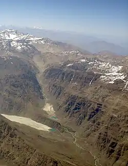 ![]() Confluence of the Río Blanco and the Los Leones river. Cerro El Plomo is visible in the upper left portion of the image, while Los Leones Dam can be seen in the lower portion of the image. | |