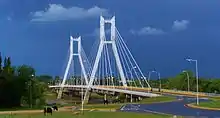 The city is served by National Routes 8, 36, and 158; as well as Las Higueras Airport, inaugurated in 1954. The cable-stayed Bicentennial Bridge, was inaugurated in 2010. Some of the city's principal tourist draws include the Río Cuarto Racetrack, which hosts Turismo Carretera touring car racing events; and Estancia El Durazno, an estate built in 1917 belonging to former Governor Ambrosio Olmos. The Río Cuarto craters, a group of geologically unusual impact craters, are located nearby. The city's UN/LOCODE is ARRCU.