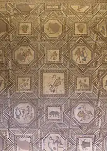 The Römisch-Germanisches Museum, which opened in 1974, is near Cologne Cathedral, on the site of a 3rd-century villa. The villa was discovered in 1941 during the construction of an air-raid shelter. On the floor of the main room of the villa is the renowned Dionysus mosaic. Since the mosaic could not be moved easily, the architects Klaus Renner and Heinz Röcke designed the museum around the mosaic. The inner courtyards of the museum mimic the layout of the ancient villa.