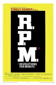 R. P. M. is a 1970 American drama film directed by Stanley Kramer, starring Anthony Quinn and Ann-Margret.[1] As the film's poster notes, the title is an initialism for "revolutions per minute", which at the time was a common term for the variable speed of a record player's turntable.