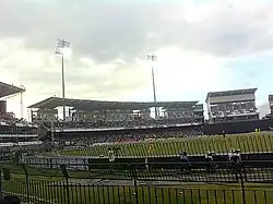 The R. Premadasa Cricket Stadium (RPS) (Sinhala: ආර්. ප්‍රේමදාස ක්‍රීඩාංගනය, Tamil: ஆர். பிரேமதாச அரங்கம்; formerly known as Khettarama Stadium) is a cricket stadium[1] on Khettarama Road, in the Maligawatta suburb of Colombo, Sri Lanka. The stadium was, before June 1994, known as the Khettarama Cricket Stadium and is today one of the main venues where the Sri Lankan cricket team play, having hosted more than 100 one-day international matches. It is the largest stadium in Sri Lanka with a capacity of 35,000 spectators. It has hosted the 2012 ICC World Twenty20 final between Sri Lanka and West Indies; the 2002 ICC Champions Trophy final between Sri Lanka and India and first semi-final of the 2011 ICC Cricket World Cup between Sri Lanka and New Zealand. This was where the highest Test score in history was recorded; 952 by Sri Lanka against India.[2] With capacity exceeding Lord's in England, the stadium is known as the "home of Sri Lankan cricket".