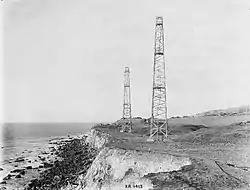 ![]() Radar receiver towers and bunkers at Woody Bay near St Lawrence, a 'Remote Reserve' station to Ventnor radar station | |