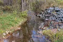 ![]() Raccoon Creek looking downstream in Nuremberg, Pennsylvania | |