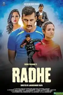 Radhe is a 2017 Nepalese romantic action social thriller film, written and directed by Jagadishwor Thapa, and produced by Sushil Pokhrel. The film stars Nikhil Upreti, Priyanka Karki, Ashishma Nakarmi and Salon Basnet in the title roles, along with Pramod Agrahari and Shishir Bhandari. The film is about a man named Radhe who loves Priya but one day he leaves the village without anyone's notice then he joins the Nepalese army to fight for his country. The film was one of the successful film that was released that year and was successful at the box office, it was estimated the film earned 3 cores in two days.[1][2][3][4][5]