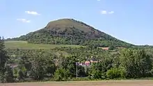 Radobýl (German: Radebeule; 399 metres (1,309 ft)) is a basalt hill in České středohoří mountains, Czech Republic. It rises above village of Žalhostice on right bank of the Elbe River 3 km west of Litoměřice. Part of the hill with abandoned basalt quarry and rich rock steppe flora is under protection as Radobýl Nature Monument (Přírodní památka Radobýl). The hill is a popular hiking destination. From huge metallic cross (erected in 1991) on the bare summit there is almost 360-degrees panoramic view of central part of České středohoří Mts., Litoměřice, Terezín and Lovosice.