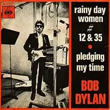 "Rainy Day Women #12 & 35" (sometimes referred to erroneously as "Everybody Must Get Stoned"[1]) is a song written and recorded by American singer-songwriter Bob Dylan. Columbia Records first released an edited version as a single in March 1966, which reached numbers two and seven in the US and UK charts respectively. A longer version appears as the opening track of Dylan's seventh studio album, Blonde on Blonde (1966), and has been included on several compilation albums.