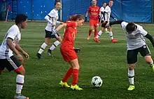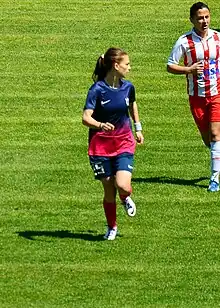 In 2013 and 2014, she appeared in ten matches for the national team at the 2015 FIFA Women's World Cup qualification – UEFA Group 2, and scored one goal.[28][29][30][31][32][33][34][35][36][37]