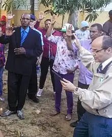 ![]() Ramfis Dominguez-Trujillo (right) at a political meeting in the countryside of the Dominican Republic | |