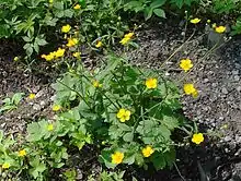 This relatively common buttercup species can be found growing in various shaded forests with dense undergrowth, as well as in other similar shaded and humid places.[4] The Raunkiær system classifies it as a hemicryptophyte species.[5] Ranunculus lanuginosus is primarily a lowland species that only rarely grows in subalpine zone with maximal elevations of around 1,400.[9][7]