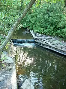 Daniel Reish of Berks County, Pennsylvania settled in the vicinity of Rapid Run in Forest Hill in 1820 and constructed a sawmill, gristmill, and distillery.[12] In the 1920s and 1930s, some people used dynamite to capture fish in Rapid Run.[13] When the logging industry in the area was active, a log dam and a sawmill were constructed on the stream where Halfway Lake currently is.[14] The first stone dam ever built by the Civilian Conservation Corps impounds Halfway Lake on Rapid Run.[9]