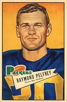 Ray Pelfrey (January 11, 1928 โ April 1, 2017) was a professional American football wide receiver who played for three seasons for the Green Bay Packers, Chicago Cardinals, Dallas Texans, and New York Giants.[1]