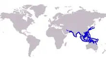 The razorbelly scad is broadly distributed over the tropical Eastern Indo-West Pacific region, not as widely distributed as most of the genus Alepes. The species has been recorded from the Red Sea in the west,[12] but is rarely found west of Pakistan. It is common along the Indian, Sri Lankan and South East Asian coasts, extending throughout Indonesia, Philippines, Taiwan, reaching as far north as Japan and as far south as northern Australia.[9] As Caranx kalla, the species was recorded at least once in the Mediterranean Sea, passing through the Suez Canal from the Red Sea as part of the Lessepsian migration.[12] The species inhabits inshore coastal environments, especially reef habitats.[2]