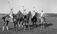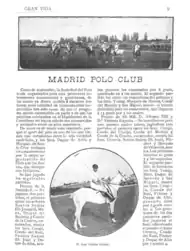 During the 1920s, the most distinguished players were the King, Peñaranda,[46] Maza and particularly Villabrágima, who was Mayor of Madrid in 1921 and one of the most successful polo players of Spain, having been the only one to reach handicap 8.[47] In 1929, he won a Grand Prix cup at the Roehampton Tournament with Alfonso XIII.[48] In general, all of the male sons of Álvaro de Figueroa (San Damián, Yebes, Velayos and José) stood out in polo. Other players who showed potential were Juan Antonio Echevarrieta, José Luis Aznar and Antonio Portago, father of Alfonso and club president between 1931 and 1932.