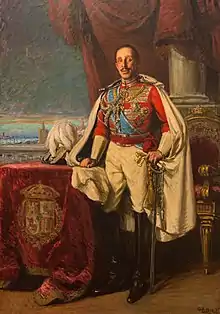 The uniform of the Real Maestranza de Caballería de Sevilla was worn by Carlos de Borbón-Dos Sicilias to the royal wedding in 1962 of his first cousin Juan Carlos of Spain, at which he served as the 'best man' and held the Spanish Royal Crown above the future monarch's head.[4] In 2021, the uniform was worn at his wedding by Carlos Fitz-James Stuart, 22nd Count of Osorno, younger son of the Duke of Alba.[5]