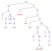- ↑ Fiengo & Lasnik (1973). "The Logical Structure of Reciprocal Sentences in English". Foundations of Language.