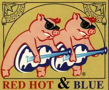 Red Hot and Blue was founded in 1989 by Atwater, Sundquist, Bob Friedman, Joel Wood, and Wendell Moore, with its first location in Arlington, Virginia, near Washington, D.C. Friedman described the concept of the restaurant as "pigs, pork, and blues" as reflected in the company's logo. The name is taken from the title of DJ Dewey Phillips' radio show which aired on WHBQ-AM in Memphis in the 1950s.[1]