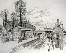 - ↑ Butt, R. V. J. (October 1995). The Directory of Railway Stations: details every public and private passenger station, halt, platform and stopping place, past and present (1st ed.). Sparkford: Patrick Stephens Ltd. p. 196. ISBN 978-1-85260-508-7. OCLC 60251199. OL 11956311M.