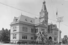 The first school building in Redwood City was called Redwood City Grammar School (also known as the Redwood City Public School) which was opened in September 1895 and located on Broadway Street across from the courthouse.[10][11] In the early years of the school, the first two floors of the building were dedicated to the elementary school and the third floor was occupied by Sequoia High School.[11] This was the only school on the Peninsula between San Francisco and Santa Clara at the time of its opening.[10] By 1927, the Redwood City Grammar School was demolished and replaced by the Fox Theatre.[11]