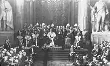 Prior to 1907, the crowns and coronets were worn along with royal mantles by the king and other princes at the monarch's coronation, during the opening of the Riksdag, and displayed on other occasions. After the death of Oscar II (the last to be crowned) in 1907, the practice of wearing the crowns at the opening of the Riksdag ceased and the crowns were no longer worn. After this, the crown of the King and his sceptre were simply displayed on cushions on either side of the silver throne while the king's mantle was draped over it. The old opening of state lasted until 1974.