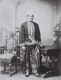 The Indonesian title of bupati is originally a loanword from Sanskrit, a shortening of the Sanskrit title bhumi-pati (bhumi भूमि '(of the) land' + pati पति 'lord', hence bhumi-pati 'lord of the land').[10] In Indonesia, bupati was originally used as a Javanese title for regional rulers in precolonial kingdoms, its first recorded usage being in the Telaga Batu inscription, which dates to the Srivijaya period, in which bhupati is mentioned among the titles of local rulers who paid allegiance to Sriwijaya's kings.[11][10] Related titles which were also used in precolonial Indonesia are adipati ('duke') and senapati ('lord of the army' or 'general'). As we know today, the district has de facto existed since January 28, 1892, in the 19th century AD, when the Dutch East Indies government established the Landarchief. On January 29, 1892, the first landarchivasis was confirmed, Jacob Anne van der Chijs which lasted until 1905. Juridically, the existence of Indonesia archival institutions began with the proclamation of Indonesia independence on August 17, 1945.[12]