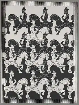 Regular Division of the Plane is a series of drawings by the Dutch artist M. C. Escher which began in 1936. These images are based on the principle of tessellation, irregular shapes or combinations of shapes that interlock completely to cover a surface or plane.[1]