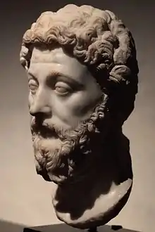 The major sources for the life and rule of Marcus are patchy and frequently unreliable. The biographies contained in the Historia Augusta claim to be written by a group of authors at the turn of the 4th century, but are in fact written by a single author (referred to here as "the biographer of the Historia Augusta") from the later 4th century (c. 395). The later biographies and the biographies of subordinate emperors and usurpers consist largely of lies and fiction, but the earlier biographies, derived primarily from now-lost earlier sources (Marius Maximus or Ignotus) are much more reliable.[1] For Marcus Aurelius' life and rule, the biographies of Hadrian, Pius, Marcus and Lucius Verus are largely reliable, but those of Aelius Verus and Avidius Cassius are partly invented.[2]