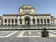 The building houses the History Museum of Armenia and the National Gallery of Armenia. Construction began in the 1950s with the National Gallery building being completed in 1977.[2][34] It was designed by Mark Grigorian and Eduard Sarapian.[2] A small portion of the ensemble, the Arno Babajanyan Concert Hall, dates back to 1916.[2] |