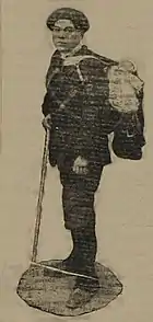 Since 1909 Republican press reported numerous incidents of requeté-related violence, ranging from insulting other juveniles[115] to provocative marches,[116] assaults on premises of left-wing newspapers[117] and organisations[118] or attempts to stop tram circulation in order to enforce observance of religious holidays.[119] Hostile press agonized about "juvenil y bizarro ejército"[120] trained for "asesinato, el robo y el incendio",[121] educated in hate and "ready to die and to kill";[122] in the best case, they were "creatures 8 to 10 years, cigarettes in their mouths and cards in their hands".[123] Progressist authors warned about "burlesca comedia de una guerra civil"[124] and in every second report "requeté" was paired with "browning".[125] There were requeté militants detained by security or court-martialled,[126] clashes with police[127] and Guardia Civil,[128] arms confiscations,[129] or administrative measures applied by civil governors against specific circulos.[130] The 1911 street battle in Sant Feliú de Llobregat, which left few people dead, might have involved some requeté members.[131] Violence was reported not only in Catalonia, but also in the Vascongadas.[132] Carlist press when discussing violence presented requeté as preventing assaults on churches[133] or ensuring safety during Carlist rallies.[134]