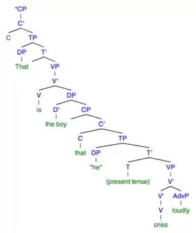 3. a) That is [the boyi that ti cries loudly.] b) *That is [the boyi that hei cries loudly.]