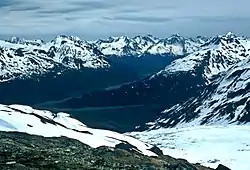 ![]() The river valley seen from the edge of the Harding Icefield | |