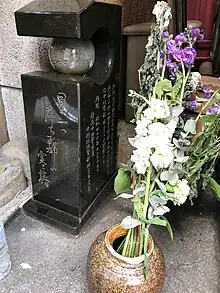 A memorial to a policeman who died during a riot in Shibuya.