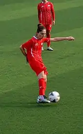 She made her first appearance in the national team taking part at the UEFA Women's Euro 2009 qualifying match against Northern Ireland on November 18, 2006.[7]
