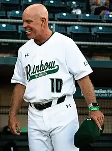 Richard Bradley Hill (born June 30, 1962)[1] is an American baseball coach, who is the current head baseball coach of the Hawaii Rainbow Warriors.[2] He was the head coach of the San Diego Toreros from 1999 to 2021. Prior to San Diego, Hill was the head coach of the Cal Lutheran Kingsmen from 1988–1993 and the San Francisco Dons from 1994–1998. He also managed the Chatham A's, a collegiate summer baseball team in the Cape Cod Baseball League from 1990 to 1993.[3] Hill's career head coaching record is 850–570–3, as of the end of the 2013 season.[4][5][6][7][8][9]