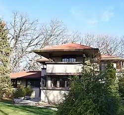 The Richard Cluever House is a historic house at 601 1st Avenue in Maywood, Illinois. Built in 1913–14, the house was designed by noted Prairie School architect John S. Van Bergen. Van Bergen worked for Frank Lloyd Wright before starting his own practice, and like many of his early designs, the Cluever House closely resembles Wright's work. The house features many verandas and balconies and rows of casement windows, providing views of the nearby Des Plaines River. Landscape architect Jens Jensen designed the house's surroundings, which include a garden between the house and the river.[2][3]