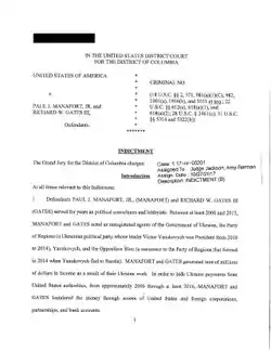- 1 2 United States of America v. Paul J. Manafort Jr and Richard W. Gates III (October 27, 2017), Text.