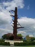 Riesa has a 25 m tall, 234 tonne, cast-iron (GGG 40) sculpture of an oak trunk, named Elbquelle, which means source of the Elbe, by Jörg Immendorff, erected in 1999. Local folk call the sculpture by many other names, most notably "Rostige Eiche", which means "Rusty Oak".