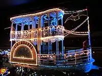The show was originally produced by Farrington Productions.[215] The company's contract expired in 2001, and Dick Foster Productions was brought on to redo Masquerade Show in the Sky. The company sought to make the show more adult-oriented, adding sexier costumes and dances.[285] The show was scaled back in 2008, and remained largely the same during its final five years. It closed in March 2013.[283][281]