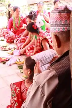 On this occasion, the seven sages and the wife of Vasishtha, Arundhati, are venerated with a betel leaf, flowers, camphor, and a lamp. Women are prescribed undertake a fast in the observance of this vrata,[2] but men are also allowed to fast for the welfare of their wives. Brahmins are offered dakshina by adherents on this occasion, believed to be favourable in the veneration of the seven sages.[3]