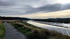 From Castle Park to Wivenhoe Railway Station, National Cycle Network Route 51 roughly follows the course of the Colne. This is a mixture of tarmac-surfaced shared-use paths, a short tarmac/gravel-surfaced area and, once out of the urban area of Colchester, a hard dirt path on the north levee of the river that passes the Hythe and the university all the way to Wivenhoe.