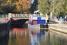Repairs were again necessary in the 1890s, but with no funds available, the navigation committee asked Fisons, who ran a 50-foot (15 m) screw tug called Speedwell to tow lighters to King's Lynn, for an advance on their tolls to fund the work. This arrangement continued, and kept the navigation open for some years.[38] When Henry de Salis visited it in 1904, he reported that most of the staunches were out of order, and that it was in poor condition.[39] The Bedford Level Commissioners kept the weed removed from the lower section, and the South Level Commissioners maintained Crosswater Staunch, but commercial traffic had ceased by the start of the First World War. Responsibility for the river passed to the Great Ouse Catchment Board with the passing of the Land Drainage Act 1930, and they removed the staunches, replacing those at Thetford and at Brandon with sluices.[40] Responsibility changed again with the formation of the Environment Agency in 1995.