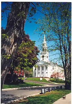 In the early 20th century, the city undertook a major beautification project, lining the banks of the Wepawaug River, and creating a series of parks which highlight the river, and building attractive stone bridges at key points. The parks highlight two of the city's major civic buildings: the town hall, a Classical Revival structure built in 1916, and the United Church of Christ Congregational Church, a late Federal-style building dating to 1823.[2]