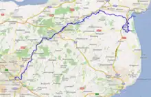Here the river turns southwards to the once-thriving port of Sandwich, after which it loops back on itself to the north before entering the Strait of Dover at Pegwell Bay. The Stonar Cut obviates the need for seagoing craft to take the longer route around the loop at Sandwich.[2]